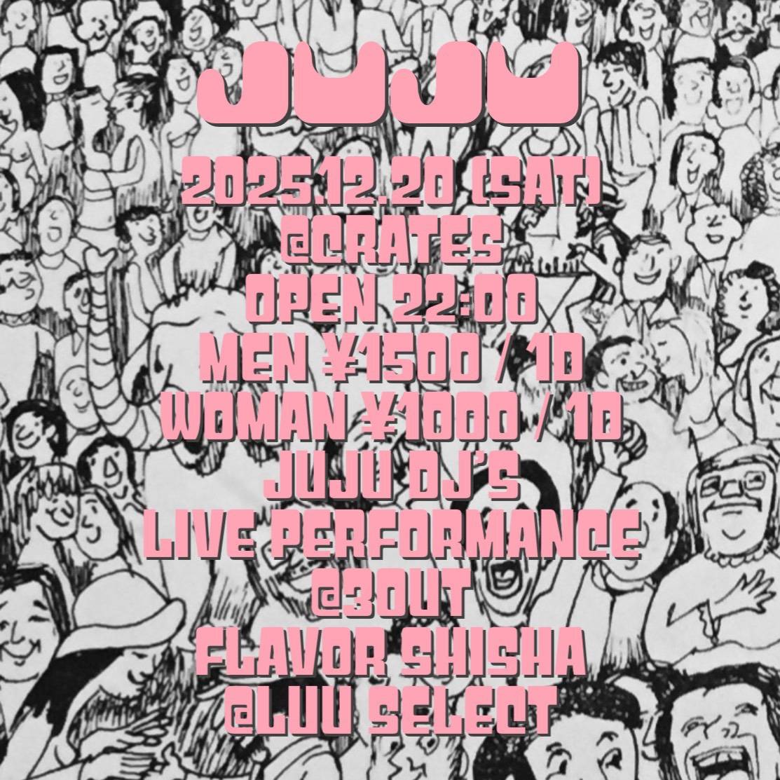 Home event, live, news 12/20(FRI)JUJU 12/20(FRI)JUJU event、live、news JUJU :::: Schedule/Price :::: :::-// 2025/12/20(FRI) :::-// OPEN 22:00 – :::-// MEN 1500yen / 1d ticket :::-// WOMAN 1000yen the 1d ticke ::: DJ ::: ■:: :: JUJU DJ’S : Live Performance : ■:: 3 OUT ::: SHISHA ::: ■:: LUU Tweet Share Hatena Pocket RSS feedly Pin it