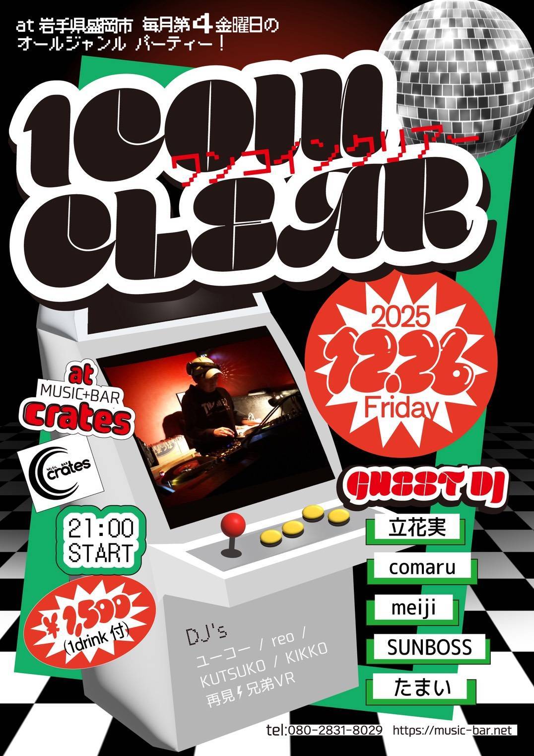Home event, live, news 12/26(FRI)1 coin clear 12/26(FRI)1 coin clear event、live、news 1 coin clear :::: Schedule/Price :::: :::-// 2025.12/26(FRI) :::-// OPEN 21:00 :::-// ¥1500 / 1D ::: GUEST DJ ::: ■:: 立花実 ■:: comaru ■:: meiji ■:: SUNBOSS ■:: たまい ::: DJ ::: ■:: YUKO ■:: REO ■:: KUTSUKO ■:: KIKKO ■:: 再見兄弟VR Tweet Share Hatena Pocket RSS feedly Pin it