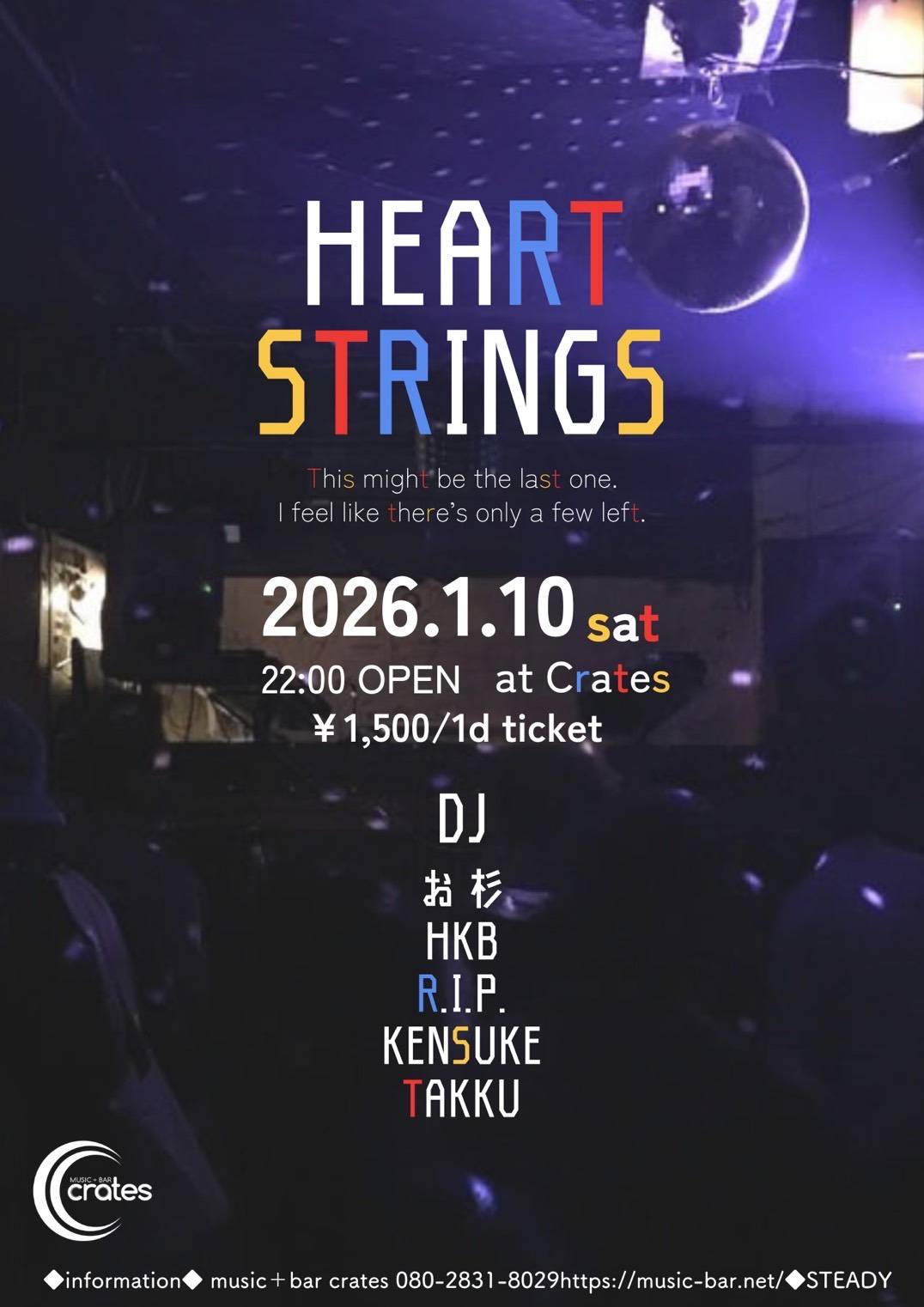 Home event, live, news 01/10(SAT)HEART STRINGS 01/10(SAT)HEART STRINGS event、live、news HEART STRINGS :::: Schedule/Price :::: :::-// 2026.01/10(SAT) :::-// OPEN 22:00 :::-// 1500yen / 1d ticket ::: LIVE ::: ■piranha head ■妖精マリチェル ■3 OUT ::: DJ ::: ■DAI ■CUTS ■G383 ■SCORPIO info ・MUSIC + BAR crates TEL:019-681-6850 Tweet Share Hatena Pocket RSS feedly Pin it