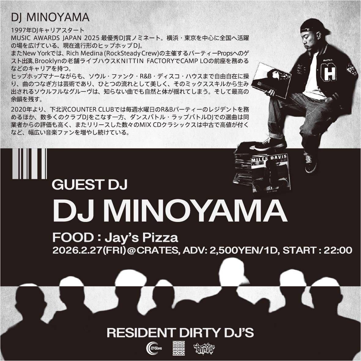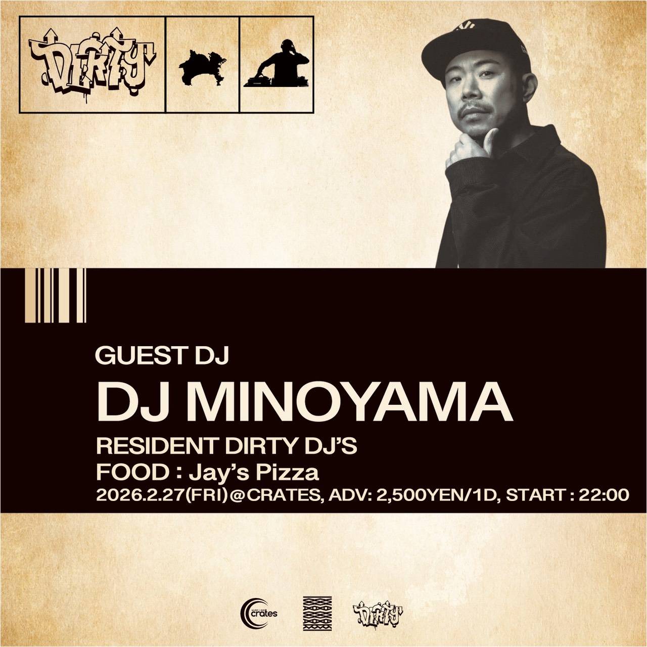 Home event, live, news 02/27(FRI)Dirty 02/27(FRI)Dirty event、live、news Dirty :::: Schedule/Price :::: :::-// 2026.02/27(FRI) :::-// OPEN 22:00 :::-// 2500yen / 1d ticket :::: GUEST DJ :::: ■:: DJ MINOYAMA :::: FOOD :::: ■:: Jay’s Pizza :::: RESIDENT DJ :::: ■:: DIRTYy DJ’s Tweet Share Hatena Pocket RSS feedly Pin it