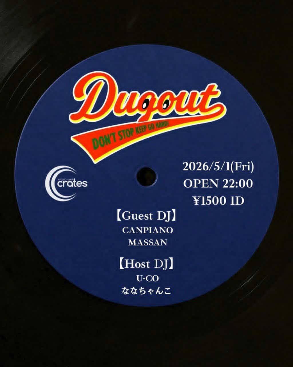 Home event, live, news 05/01(FRI)DUGOUT 05/01(FRI)DUGOUT event、live、news DUGOUT :::: Schedule/Price :::: :::-// 2026.05/01(FRI) :::-// OPEN 22:00 :::-// 1500yen / 1d ticket :::: GUEST DJ :::: ■:: CANPIANO ■:: MASSAN :::: DJ :::: ■:: U-CO ■:: ななちゃんこ Tweet Share Hatena Pocket RSS feedly Pin it