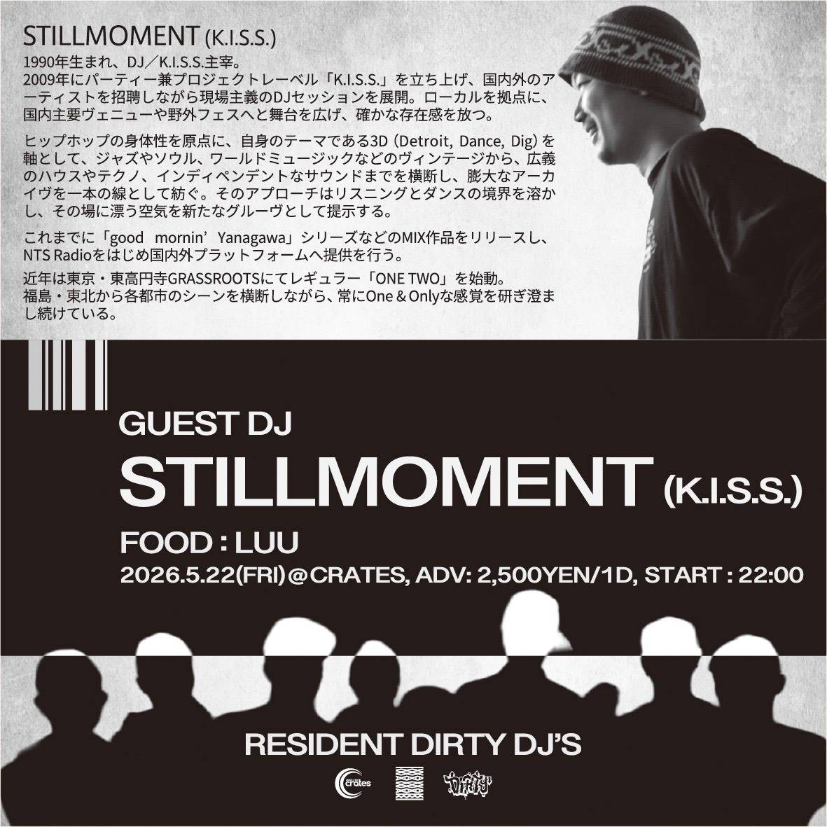 Home event, live, news 05/22(FRI)Dirty 05/22(FRI)Dirty event、live、news Dirty :::: Schedule/Price :::: :::-// 2026.05/22(FRI) :::-// OPEN 22:00 :::-// 2500yen / 1d ticket :::: GUEST DJ :::: ■:: STILLMOMENT(K.I.S.S.) :::: FOOD :::: ■:: LUU :::: RESIDENT DJ :::: ■:: DIRTYy DJ’s Tweet Share Hatena Pocket RSS feedly Pin it
